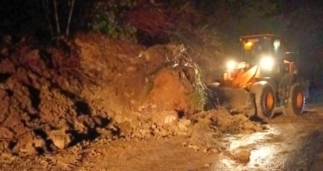 Heyelan sonrası Cide 154’üncü Karayolları Şefliği ekipleri tarafından yolun açılması için çalışma başlatıldı.
