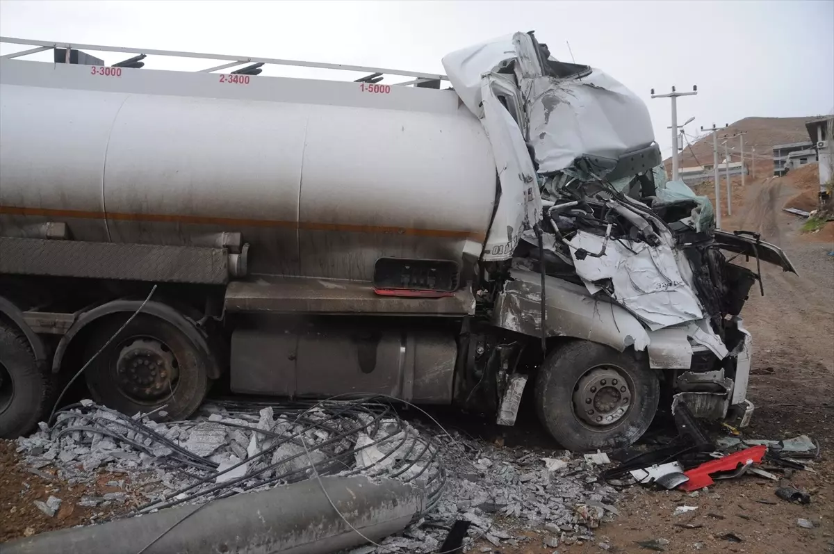 Cumhuriyet Mahallesi Bozalan TOKİ konutları mevkisinde Kenan E. yönetimindeki 01 DCJ 18 plakalı akaryakıt tankeri kontrolden çıkarak elektrik direğine çarptı.