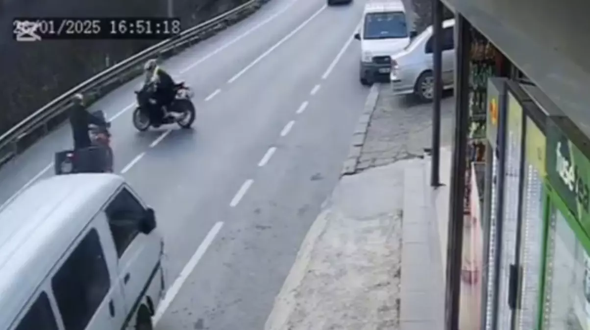 BEYKOZ’da yola çıkmak için hareket eden motosiklet ile seyir halindeki motosiklet çarpıştı. O anlar güvenlik kamerasına yansıdı. Kaza, Beykoz’da dün…