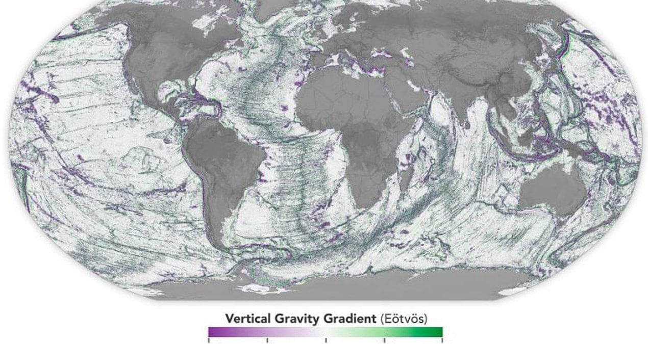 Harita üzerinde mor renk, deniz tabanındaki çöküntüleri, yeşil ise daha yüksek kütleli dağlık bölgeleri gösteriyor. Daha önceki uydu gözlemleri, yalnızca 1 kilometre yüksekliğindeki büyük dağları tespit edebiliyordu. SWOT sayesinde bu sınır 500 metreye kadar indi. Böylece bilinen deniz altı dağlarının sayısı 44 binden 100 bine çıktı.